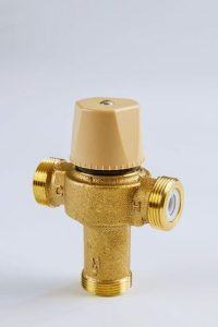 The TXV is brass material. The valve contains an inlet and outlet, which help entry and exit of refrigerant. The TXV is between the condenser and the evaporator in the refrigeration cycle.